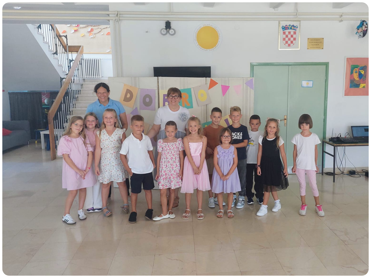 Nakon zabavnog programa i fotografiranja, upoznavanje s učenicima i roditeljima nastavilo se u učionicama gdje učenici nisu krili uzbuđenje svojom novom školom, ali i poklončićima u znak dobrodošlice koji su ih dočekali na njihovim školskim klupama.