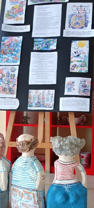 Najbolji učenički radovi osim u predvorju škole, za potrebe izložbe “Djela braće Veža” bili su izloženi u Općinskoj knjižnici Hrvatska sloga Gradac na izložbi.
